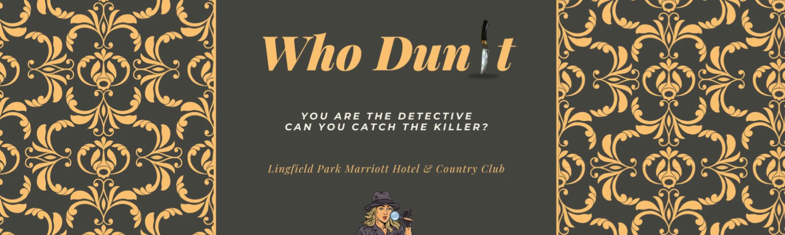 Step into a world of mystery and deception at Lingfield Park Marriott Hotel & Country Club. Set against the backdrop of the scenic Surrey countryside and the iconic Lingfield Park Racecourse, our Murder Mystery Dinner promises an unforgettable night of entertainment, gourmet cuisine, and thrilling surprises.